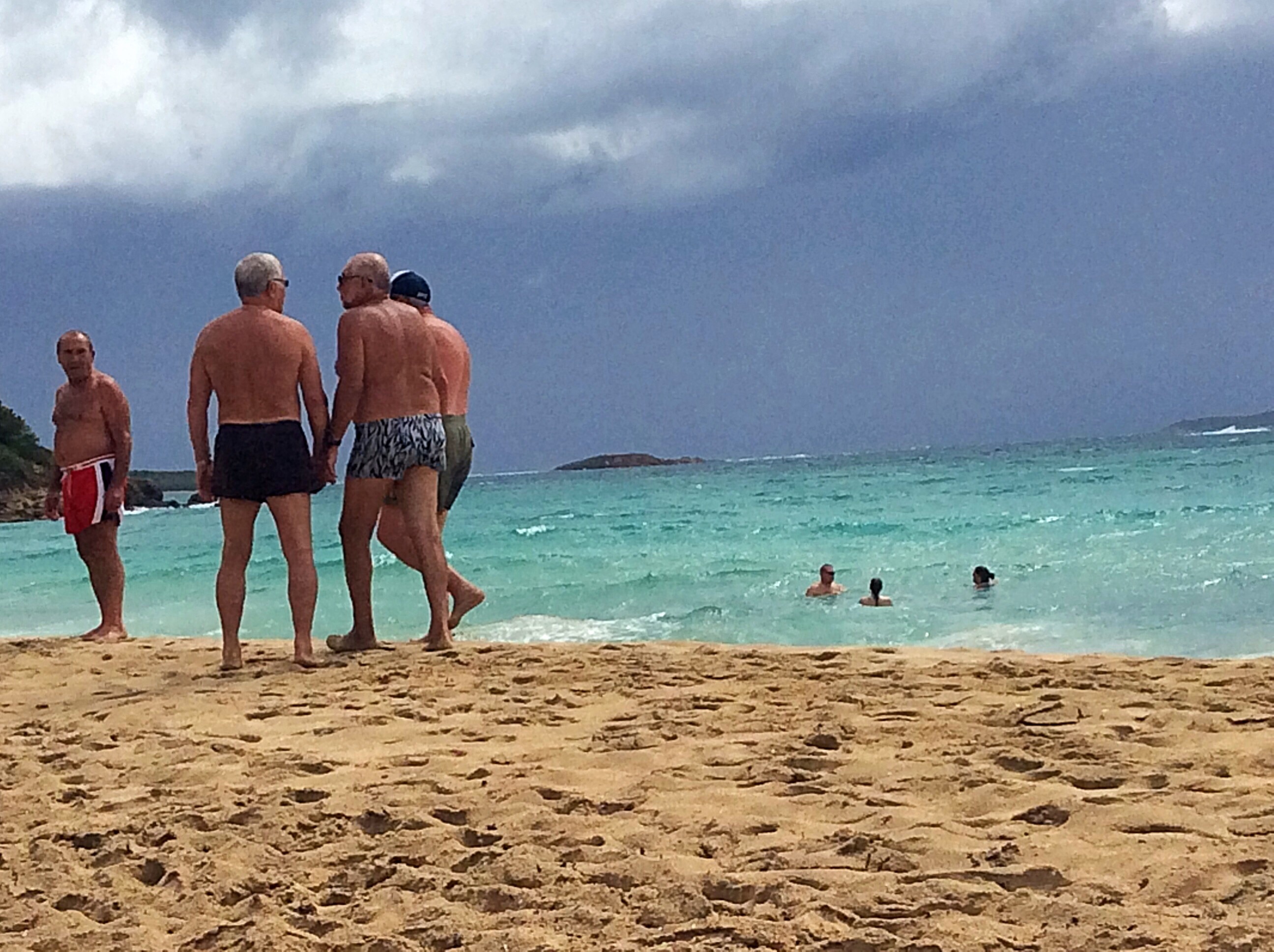 My row of three was a particularly interesting cocktail consisting of a stunning (STUNNING) young chiropractor from Charlotte who had popped down to St. Thomas to compete in a five mile ocean swim to the island of St. John. She was breathtaking in that clean faced, perfect featured, bright eyed, slight build, unassuming smile kind of way and carrying a dog eared little known Bronte novel like it was a baby–pretty much the best and most refreshing cco-rower. . . then our center passenger arrived.
