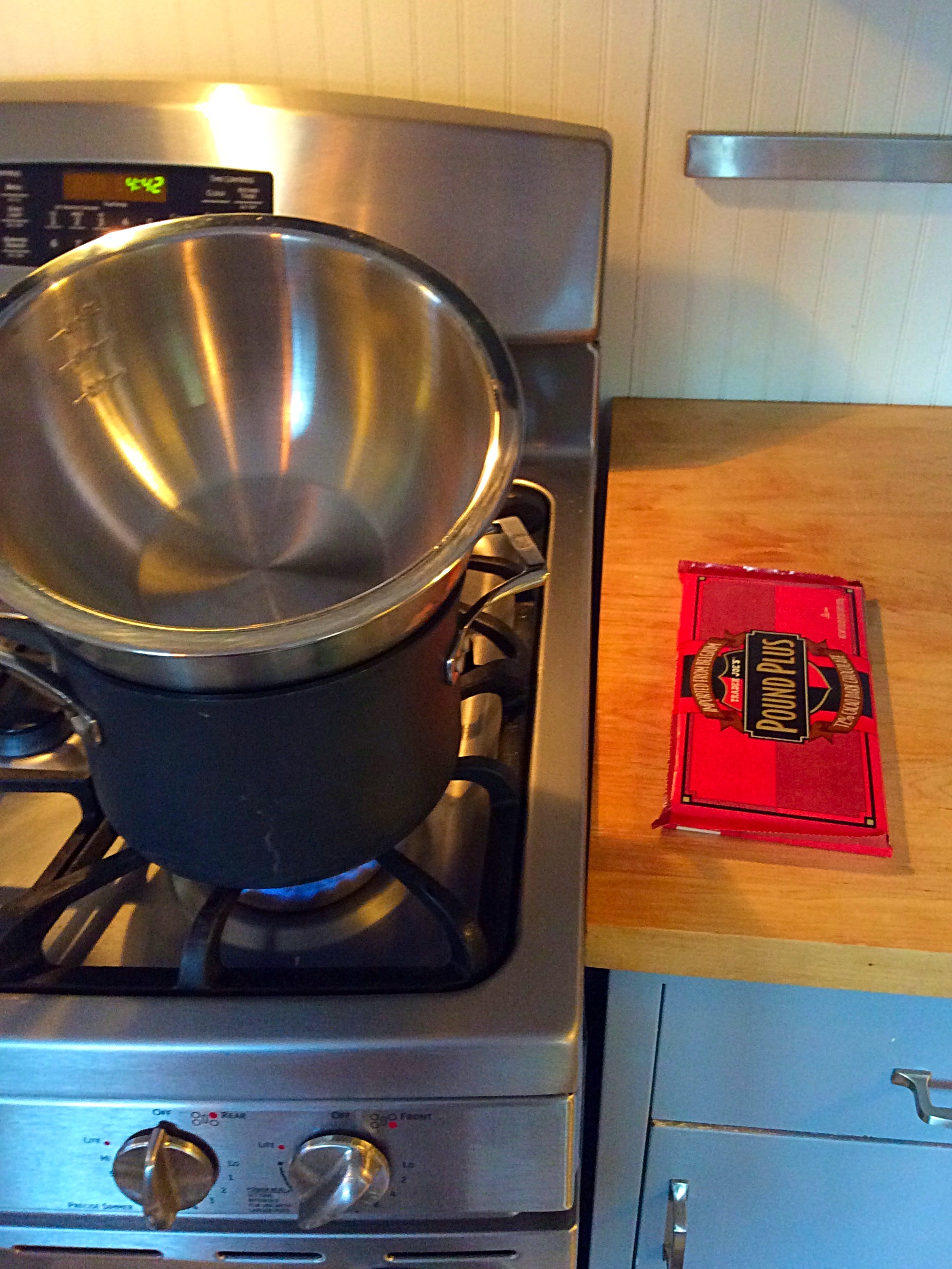 CHOCOLATE (I’ve usually got an emergency supply, I just melt up whatever is handy—chocolate bar, chocolate chips, old Easter candy. . . just kidding. There’s no such thing as old candy in this house)